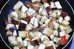 锅内比平时炒菜多放一点油 开始煎茄子