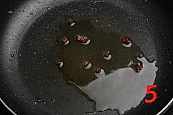锅内做油,放入花椒煸香(多放些油,茄子比较吃油)。