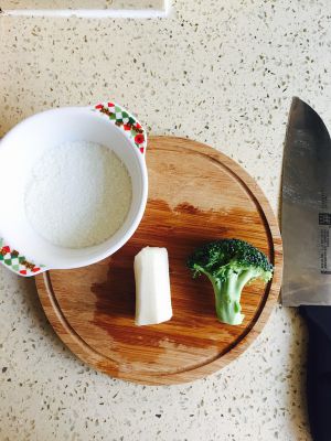 准备山药一小段,西蓝花一朵 ,米粉50g(米粉多少要根据宝宝食量)