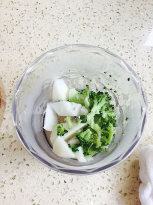 将西蓝花与山药蒸熟,放入搅拌机里