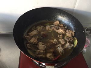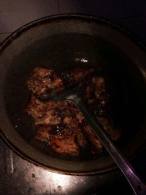 炒融冰糖。这个关键呀。排骨到时色泽怎样就靠它了。
