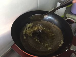 油锅将葱姜蒜爆香,倒入沥干水的排骨,炒至微微变色