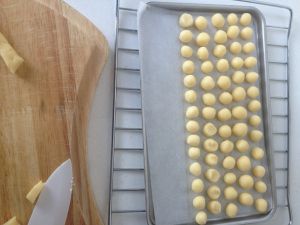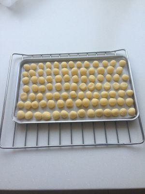 揉成黄豆大小 (我揉的有点大)烤盘铺上油纸