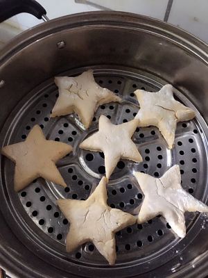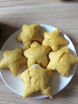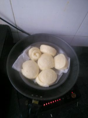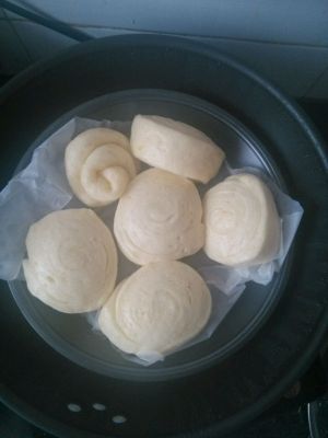 面团发起后用,再揉揉,排空气体。捏成自己想要的行状。放置15分钟冷水上锅蒸。