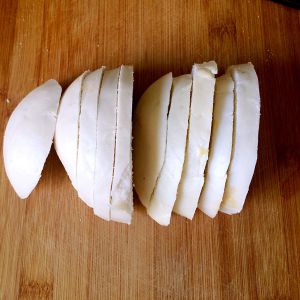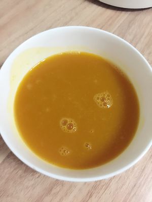 将南瓜切片上锅蒸十五分钟,蒸熟后用料理棒打成南瓜泥。