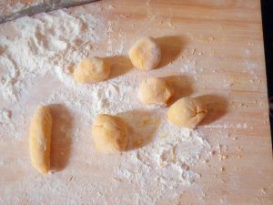 揉成一个光滑柔软的面团。南瓜蒸熟后的水含量不一样,所以需要多少面粉没有固定的比例,可以边揉边加面粉,达到理想的柔软程度即可。