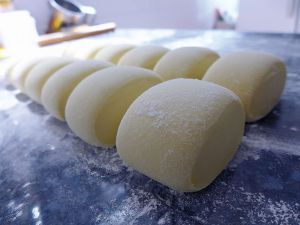 面团揉至三光,(面团表面光滑不粘手)、手光(手上不沾面)、盆光(盆里不沾面)。