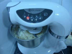 所有面粉混合在一起,撒上酵母,用温水和面。面粉的吸水性不同,可以适量增加和减少面团的水,比如用230g剩余10g。或者240g在多加10g。