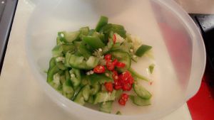 馒头下锅翻炒,炒至油全被吸收馒头金黄,取出。 炒生肉,再下辣椒,再白菜,再把馒头重新下过翻炒,放上柴米油盐酱醋茶。炒至香味出来~出锅!