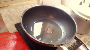 炒锅加热,倒入适量食用油,油热后,下入均匀包裹蛋液的馒头片。