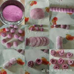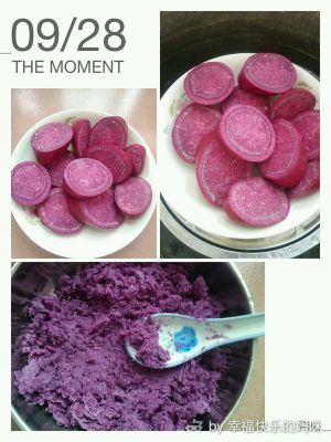 先将紫薯洗净切片,上锅蒸熟,然后放凉捣成泥备用。
