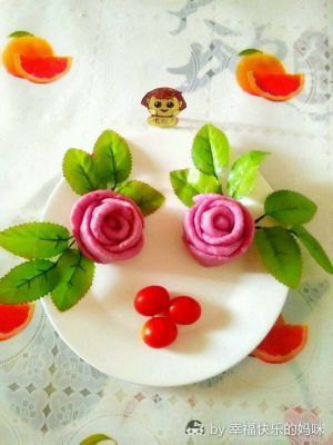 家里刚好有三次在网上买的丝网花材料,拿了两片叶子做装饰摆盘漂亮,看着美美的。