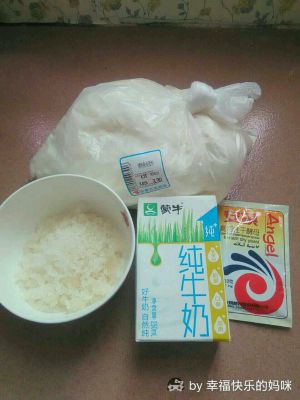 准备好一些白面粉,一些白砂糖,一包干孝母粉,一瓶纯牛奶。