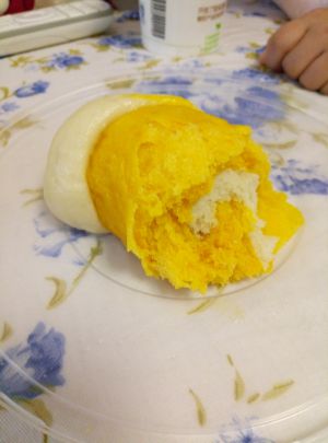 颜色还是黄澄澄。宝宝也很爱吃哦。