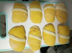 分成大小均匀剂子,这些面团刚好可以做10个贝壳馒头