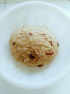 成型了,有糖份不敢揉所以看耐心了!在大饭店做面点得师傅本人是很配服的!!揉好后放到干净盆里地下撒点面粉!防止面起好后沾盆底!