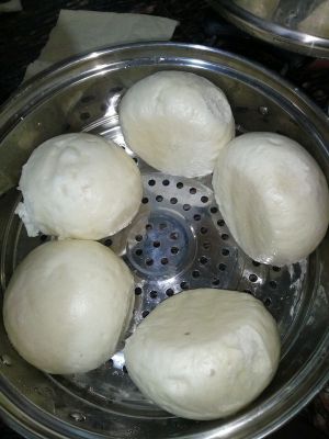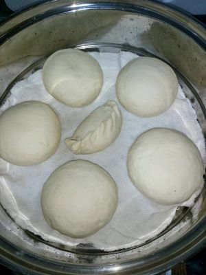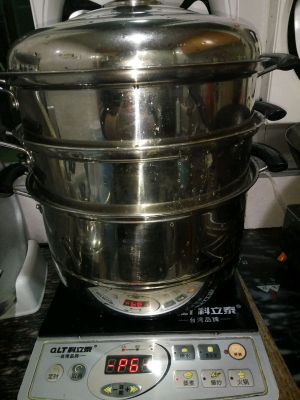 上锅开蒸了!这里有一个窍门,如果是已经搁置饧发好的面团,可以直接烧开后入锅蒸制,若是没有饧发透的面团,则冷水入锅蒸制,因为在水逐渐加温的过程中,对面团也可以起到饧发的作用
