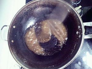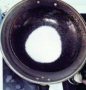开大火 锅里放入300克白糖(我这白糖一袋是300克)要不停搅开