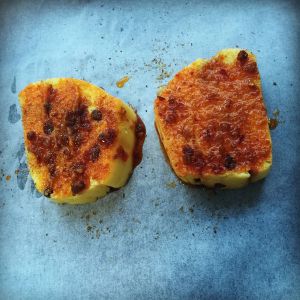 馒头切片,撒上椒盐,刷辣椒酱,豆瓣酱都随意,在刷层食用油,放入烤箱烘烤。