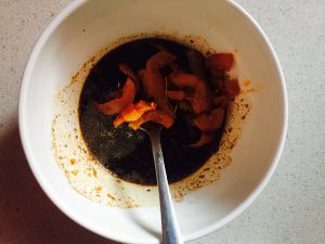 除陈醋,鸡精的调料混合,加入麻辣萝卜备用