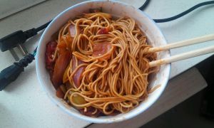 出锅,盛碗,品尝。(今天人比较多,所以我炒的面就都吃完了。☺)