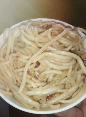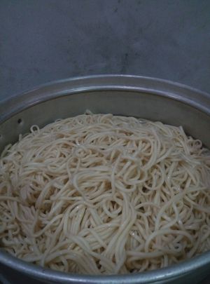 生面放入开水中煮至微熟,捞起用冷水过一边防止全部黏在一起!