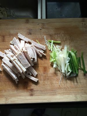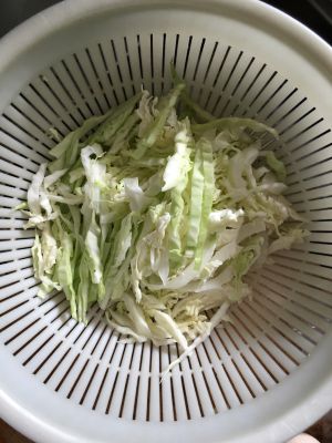 包菜切丝,蒜苗切丝