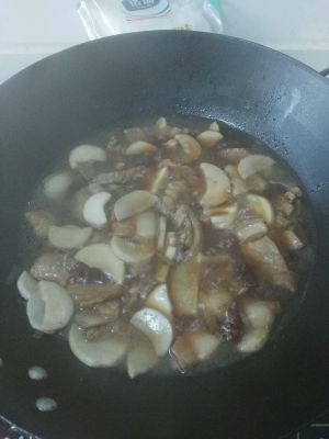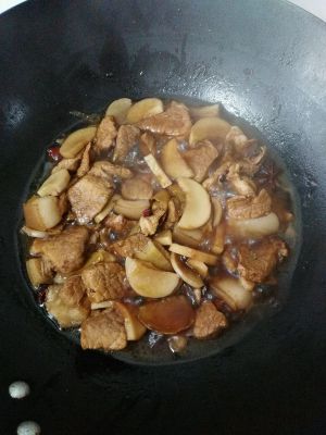 加入葱、姜、花椒、大料、腐乳翻炒,放点适量的老抽调色、生抽调味,根据个人口味加盐。