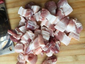 捡油点的肉块先炒一下,顺便把油也煎一些掉。