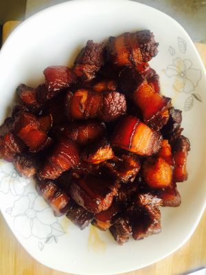 米饭红烧肉十青菜,或者早上取几块肉切碎青椒或土豆丝做成肉夹馍十粥
