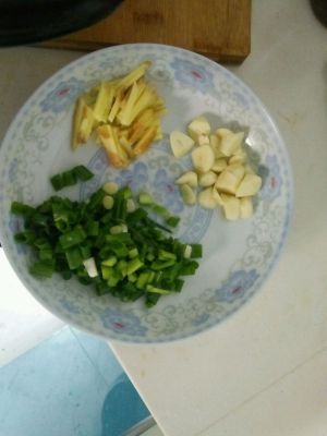 准备好肉馅的食材:500克五花肉馅,300克焯过水的山药,葱白、姜片,料酒和生抽。