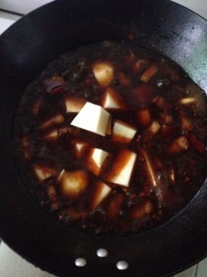 下少许老抽,小火慢炒,炒一分钟左右,主要是为了炒出所有调料的香味,不能用大火,以免糊锅