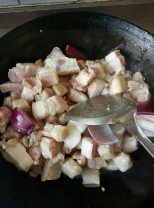注意:加土豆翻炒时要加盐,否则土豆会没味道。腌肉的时候不要放太多盐,因为后面步骤还会放盐