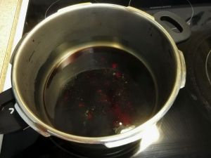 转到高压锅中,大火出汽后转小火压十五分钟,关火,汽跌后揭盖出锅。