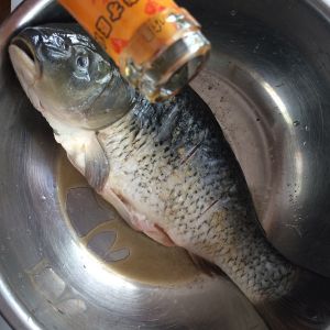 鱼清洗干净,切花刀,放料酒、胡椒粉、表面和鱼肚内抹盐腌渍30分钟。