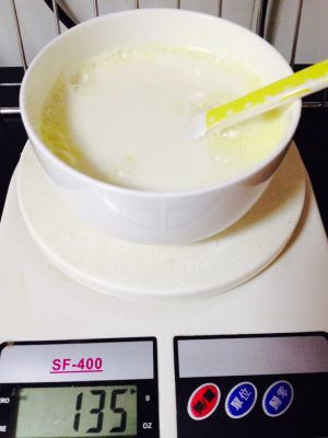 蛋液牛奶均匀搅拌后,过筛4次,之后静止15分钟,可以减少成品里产生过多气泡。