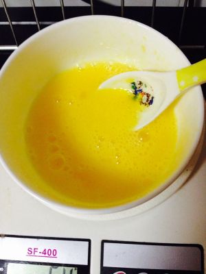 分蛋黄,鸡蛋打散,小心搅拌。
