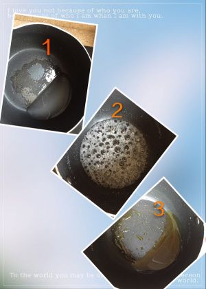 1.把90g的清水加入90g的白砂糖里,大火煮开。糖水起泡泡后转小火,偶尔转动一下锅,好让糖溶均匀,不要搅拌。糖水颜色会慢慢加深,看个人口味,喜欢甜的话,颜色变黄了就可以关火,喜欢苦的煮久点。好了之后趁热倒入容器里,不然糖水会变硬。