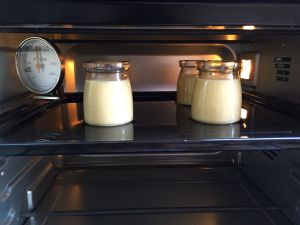 布丁液均匀倒入瓶中,并放入有温水的烤盘中,上下火200度15分钟