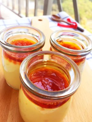 将模具倒扣在盘子里,把布丁模拿走,这样一道美味的焦糖布丁就做好了。