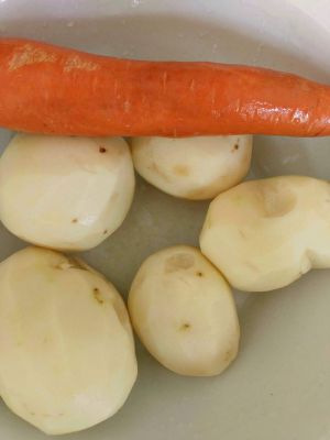 土豆去皮洗净胡萝卜洗净 ,将葱切碎备用(用来调味和增加颜色)