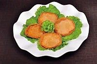 平底锅放少许油,小火,用汤匙将拌好的食材匀平在锅里,最好薄点才容易煎,煎至两面金黄即可。