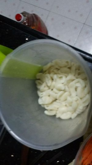 面粉加水和一小勺盐揉透备用,最好醒个20分钟,那样会更加好搓出猫耳朵