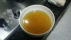 泡过野山菌的水过滤好在微波炉加热2分钟。