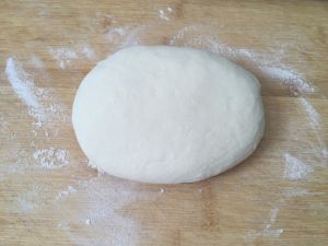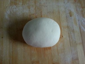 这个时候面团醒得差不多了。在案板上撒一层面粉,取出面团,揉光滑。