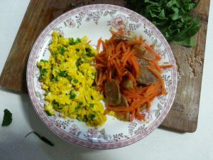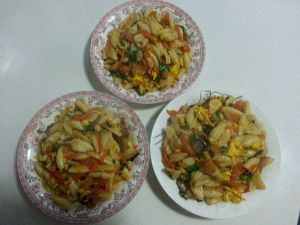 装盘喽,是否色,香,味,营养俱全呢?这个是3人份哦!一人一份,绝对光盘,我家小爷们的食量不赖的。