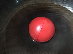 醒面的时间来准备菜。西红柿去皮:西红柿洗净后,在表面划十字,中间划一圈,开水中浸泡,就可以轻松去皮了。去皮后切成小块。
