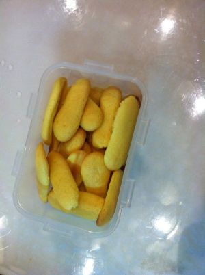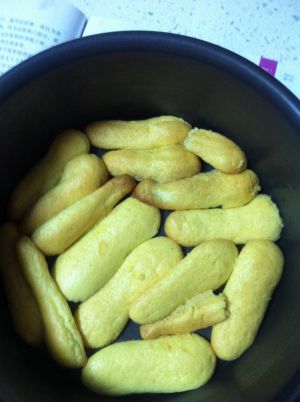 手指饼干是我事先做好的一份,大约30跟左右,手指饼干不愿做的话,超市也可买得到,当然,用海绵蛋糕代替手指饼干也是可以的,用海绵蛋糕的话需准备2层