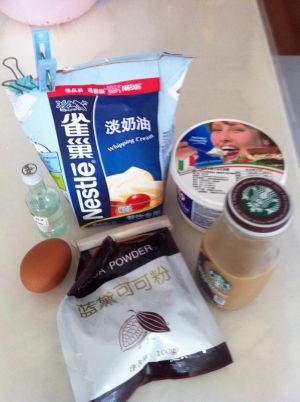 咖啡和朗姆酒混合成咖啡酒,备用。(其实也有专门的咖啡酒卖,没买到的话可以跟我一样用咖啡和朗姆酒调制,最好用浓咖啡,不喜欢浓咖啡的朋友,可以用咖啡粉调淡一点,我的就比较淡)