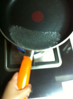 砂糖和水一起倒入盆中 加热至沸腾 搅拌均匀